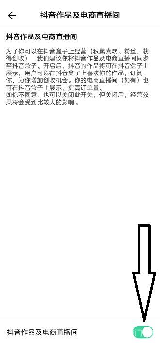 6、进入对应界面后在最下面有授权的选项,将后面的开关点击开启即可,这样用户在抖音开启直播的时候在抖音盒子上也会同步直播。
