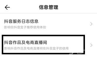 5、在信息管理界面有抖音服务日志信息和抖音作品及电商直播间两个选项,点击【抖音作品及电商直播间】;
