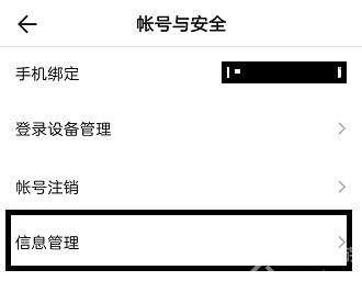 4、在账号与安全界面可以查看自己的绑定信息以及登录设备管理等,点击其中的【信息管理】;
