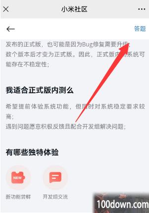 4、进入申请页面以后,点击右上角的【答题】,就能进入小米内测答题页面;