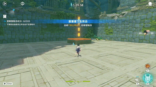 可以使用利用魈的下落攻击,将「藤蔓球门」打回地面,拾取冒险币获得积分,魈使用元素战技,也可以在空中移动拾取冒险币。