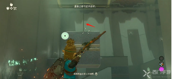 第一步:进入神庙,使用弓箭射断绳索,获得方块。