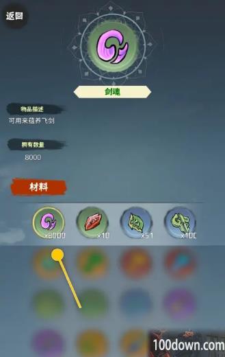 2、玩家选择想要蕴养的飞剑,然后在下方就可以看到有蕴养的功能,消耗剑魂+灵石就可以蕴养了。