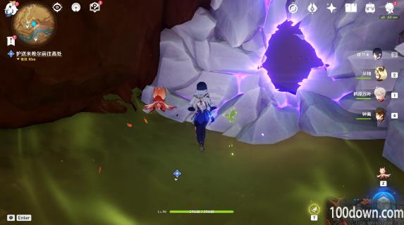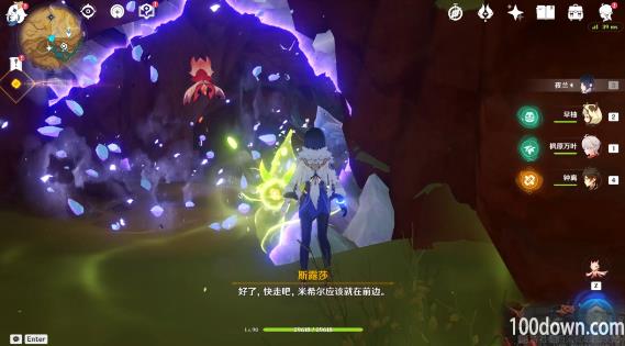 4、往洞口里面一直走,就能看到和刚才一样的紫色迷雾,启动「斯露莎」模式