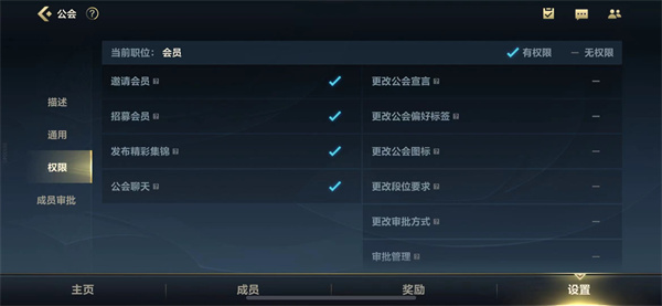 4、最后玩家们就可以在游戏里面看到自己的在公会里面有哪些权限了。