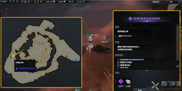 2、然后跟着指引走就可以,第一阶段比较简单,等任务进行到【失去的足迹】时候,玩家要坐船前往【战休沙尔】。