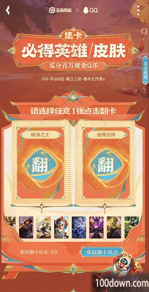 3、之后就可以直接进入王者荣耀集卡赢皮肤活动的页面,玩家通过翻卡来集卡,集满卡就可以领取皮肤。