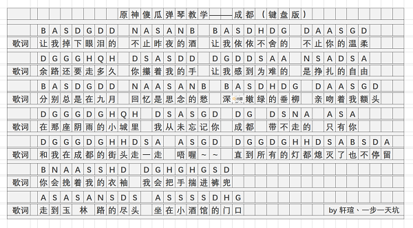 原神成都琴谱-原神成都手机版电脑版琴谱分享