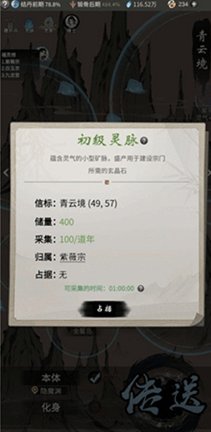 4.如果玩家想要占据其他宗门内的灵脉,必须要有足够的战力,或者找一个强大的宗门做靠山。