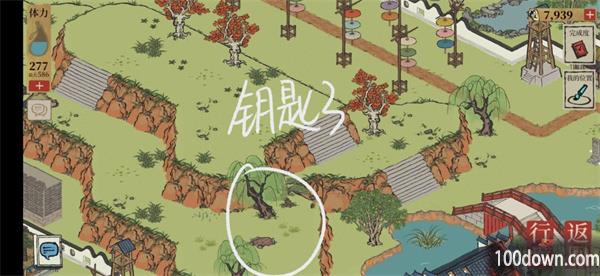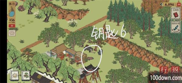 1、钥匙一:在茅草屋的右侧、松树和杜鹃花丛的中间可以找到钥匙一;