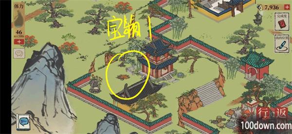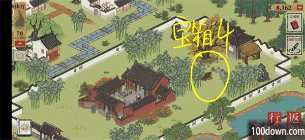 7、宝箱一:在假山旁边的大钟鼓楼前面,找到宝箱一;