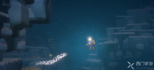 2、玩家就要到水下30m的位置,寻找这个奶牛花纹电海鳝,在位置附近一般会有提示;