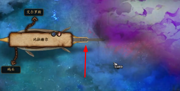 5、到达比拉谢尔号后,往后面移动,找到前往“艾尔罗斯”传送门;