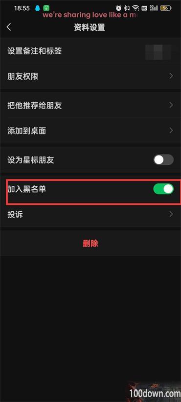 7.最后在该页面中点击关闭【加入黑名单】即可;