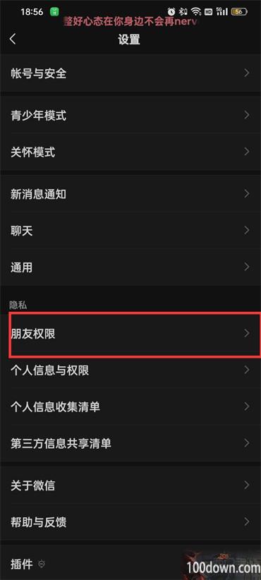 4.在朋友权限的页面中点击【通讯录黑名单】;