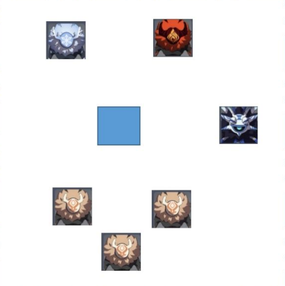 初始登场的是,持近丘人*3,风丘丘萨满^1,火冰弹所人*2