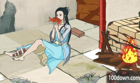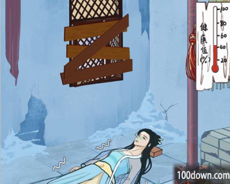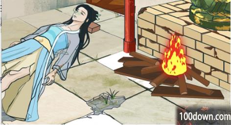 2、之后拖动木板到人腿上,可以治好腿,接着再使用火折子点燃柴堆,房间就会暖和起来;
