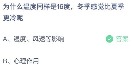 为什么温度同样是16度,感觉比夏季更冷呢-蚂蚁庄园11月7日答案