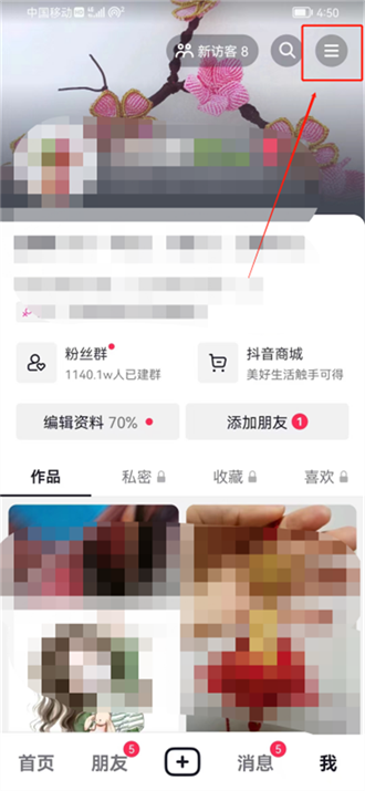 2、进入个人页面后,网上寻找【三个横】的图标。