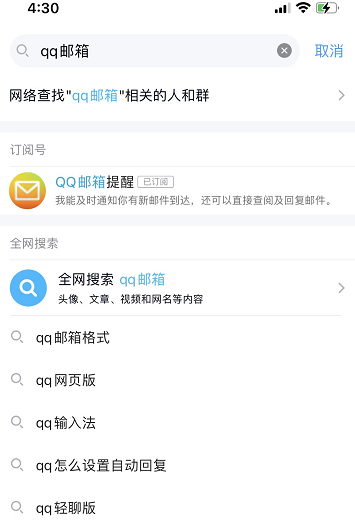 2.玩家在这个搜索框中输入【qq邮箱】,然后会出来一个QQ邮箱的订阅号;