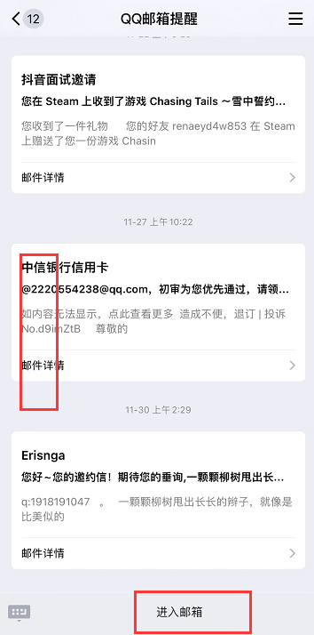 4、订阅号界面的下方还会有一个【进入邮箱】的功能,如果玩家手机/电脑上下载了qq邮箱app,点击进入邮箱之后就会自动跳转到qq邮箱的app中,如果玩家没有下载qq邮箱app,那么点击进入邮箱之后,就会进入网页版qq邮箱界面。