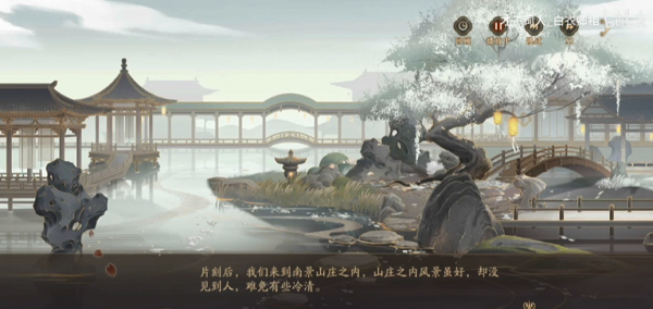 2、然后开始观看对话,对话内容就是玉泽叮嘱各位学子来南塘游玩的注意事项,看完剧情来到【南景山庄】;