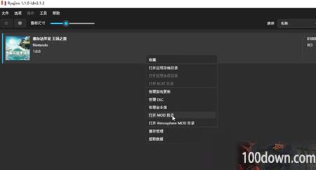 1、打开你的模拟器,找到你添加好的塞尔达传说王国之泪游戏,右键选中,打开“mod”;
