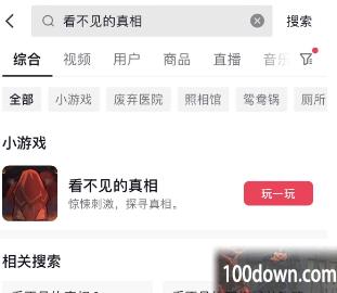 ①玩家打开自己的抖音app,然后在上方搜索框中输入“看不见的真相”就可以找到对应游戏;