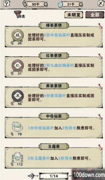 1、绿茶茶饼:处理好的2份中岳仙茶叶直接压实制成。