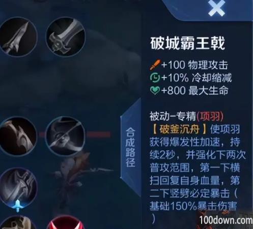 被动-专精:二技能【破釜沉舟】,将变更为释放时使项羽获得爆发性加速,持续2秒,并强化下两次普攻范围,持续5秒。第一下横扫将回复260(+30/Lv)加10(+2%/Lv)已损生命值,并造成70(+60/Lv)(+1.0ad)点物理伤害,第二下竖劈造成110(+100/Lv)(+1.7ad)物理伤害且必定暴击(基础150%暴击伤害)