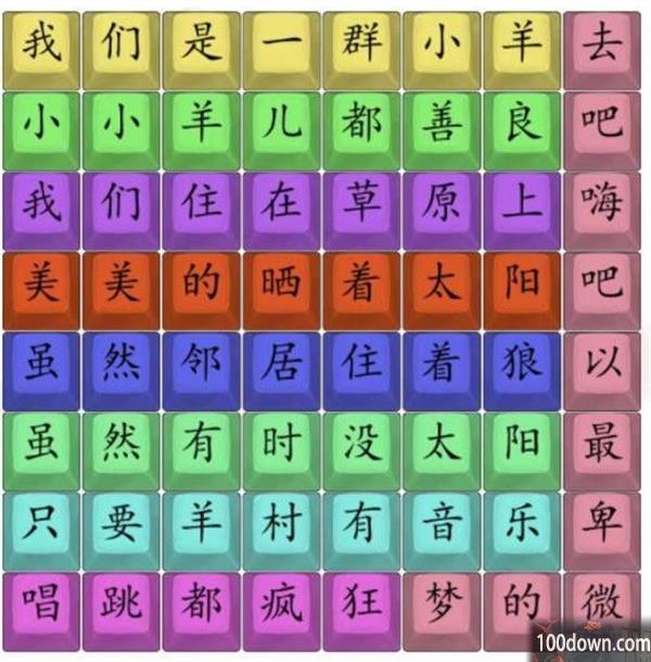 我们是一群小羊、小小羊儿都善良、我们住在草原上、美美的晒着太阳、虽然邻居住着狼、虽然有时没太阳、只要羊村有音乐、唱跳都疯狂、去吧嗨吧以最卑微的梦。
