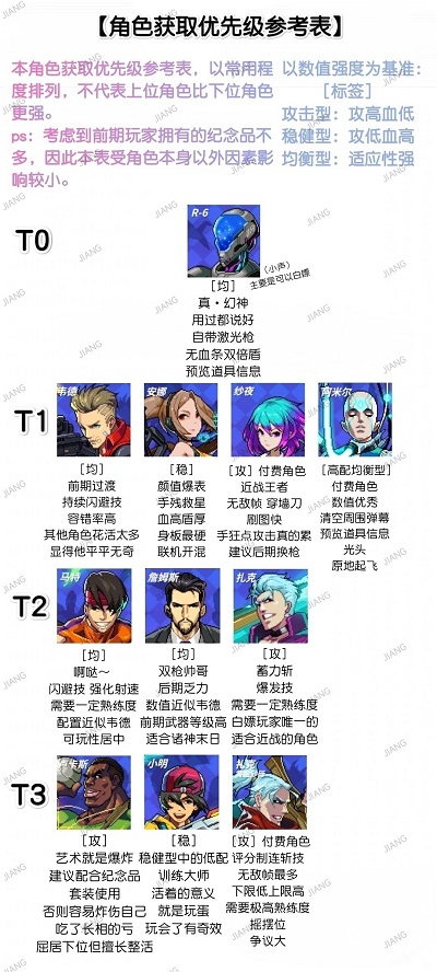 目前在游戏中R-6可以说是最适合新手玩家使用的角色了,不仅强度很不错,而且可以免费获得,这个角色自带激光枪,无血条还有双倍盾,能力很不错。
