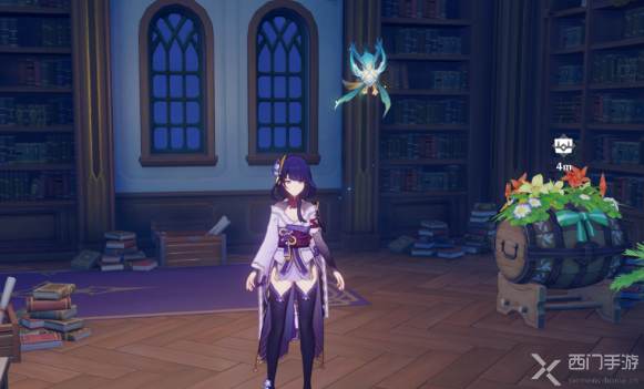 3、进入右侧的第一间房间中就是魔女之宝库的位置,然后在窗户旁的书架上就可以看到宝箱了。