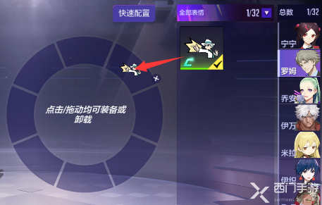 在右侧可以选择需要搭配的角色,然后直接拖动到对应的位置即可。