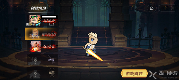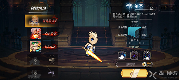 3、点击后进入游戏界面,在这里可以选择剑士作为自己的职业,选择一个名字进入游戏进行对战;