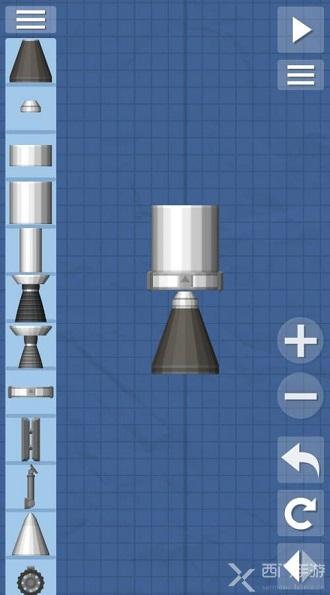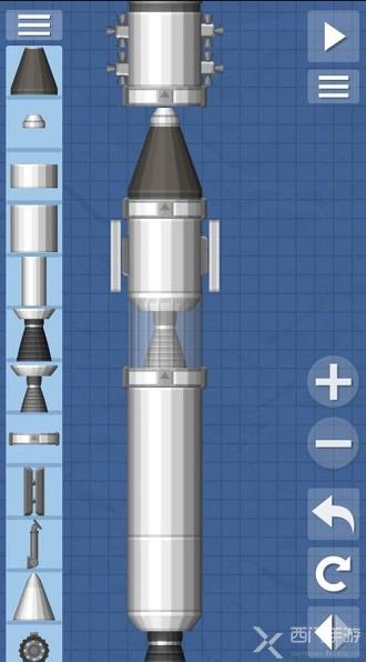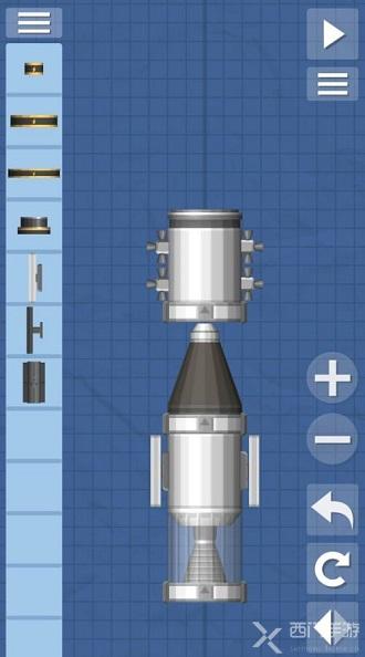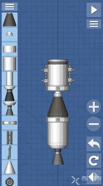 5、在鹰发动机下面的隔离器下方放一个长燃料箱和中燃料箱,在最下面加上鹰发动机;