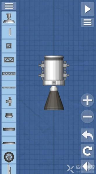 3、放置完毕后在控制室下面加一个分离器,分离器下面再加一个中等燃料箱,在下方放上鹰发动机;