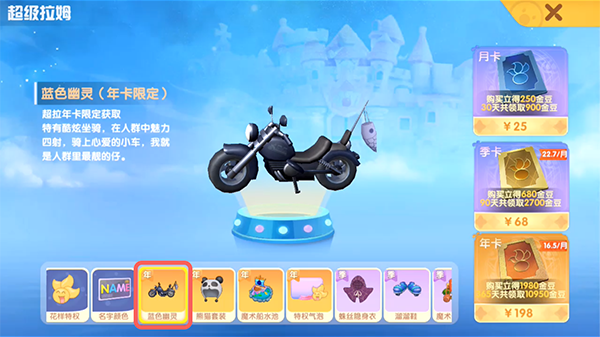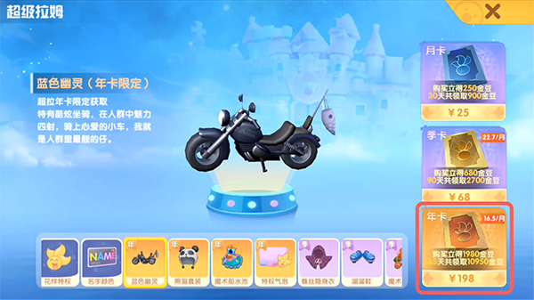 2.然后在右侧的超级拉姆选择购买【年卡】,花费198元购买;