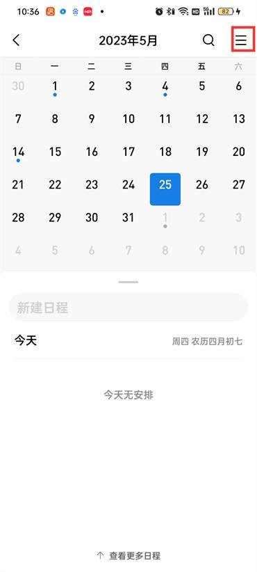 2.然后来到日历的页面中点击右上角的【三横】图标;