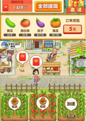 2、等农作物成熟之后,玩家把他们出售给顾客,就可以赚取红包了;