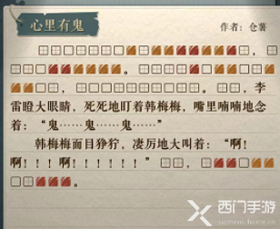 在海龟蘑菇汤游戏中会有很多的关卡,其中心里有鬼这个故事中,是李雷和韩梅梅在玩你比划我猜的游戏,在游戏中发生了一些有趣的事情,那么这个关卡怎么过呢,接下来小编为大家带来了详细介绍,希望可以帮助到大家。