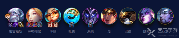 1、阵容成员:格雷福斯、萨勒芬妮、泽丽、扎克、潘森、洛、巴德、婕拉、亚索
