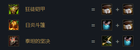 泰坦的坚决:当携带者受到伤害或造成暴击时,获得可叠加的2攻击力和法术强度。这个效果最多叠加25次,且叠满后携带者会获得25护甲和魔法抗性。