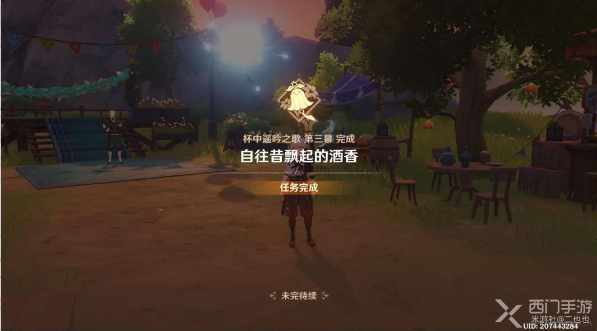 对话结束,完成任务「杯中遥吟之歌·第三幕·自往昔飘起的酒香」。