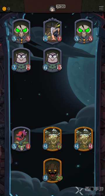 2、打不过的话可以先拿一些随从上去先顶着,比如遗言类的小蜘蛛这类的,第七关前优先能凑出两张三星欲望泥潭和一张三星小树精;