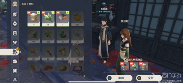 交付一袋稻米(可在璃月港的杂货店购买,或稻妻城的杂货店购买)、一个海草、一块鱼肉(清泉镇的水池),与瓦希德对话,对话结束任务完成。