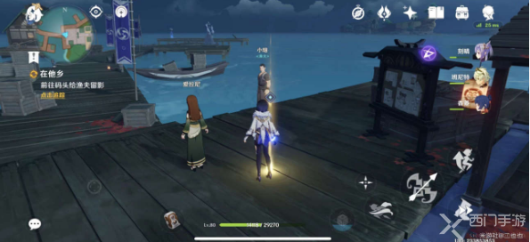 4、前往码头给渔夫留影:在指引位置拍照,与小畑(tian)对话;