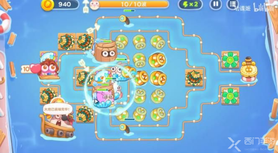 3、后期瘠薄的话,玩家可以在最中间的区域放满更多的鱼雷炮,这样基本就可以通关了。