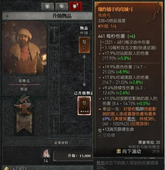 游戏中获得的每件装备都可以根据稀有程度升级一定次数。 每次升级都会增加 5 级物品等级。 虽然您可以升级普通物品和魔法物品,但这只是浪费时间和材料。 稀有、传奇和暗金物品才是值得升级的。