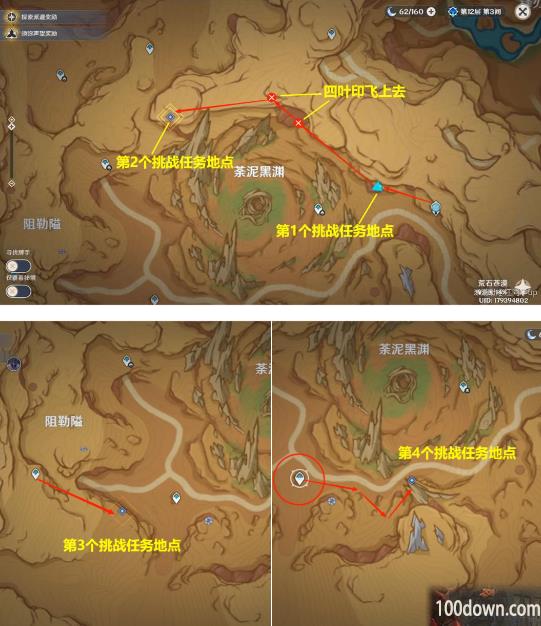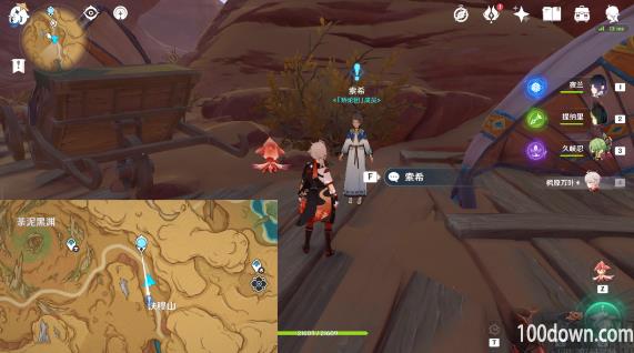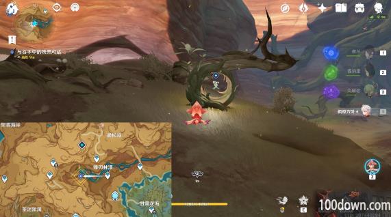 在经过荒石苍漠最南边的传送锚点附近时,派蒙说她听到了“咚咚”的声音。靠近传送锚点旁边图示位置灌木丛中的三角箭头处,交互挖掘即可触发任务「善恶的赫瓦雷纳·彼时漫天异彩」。